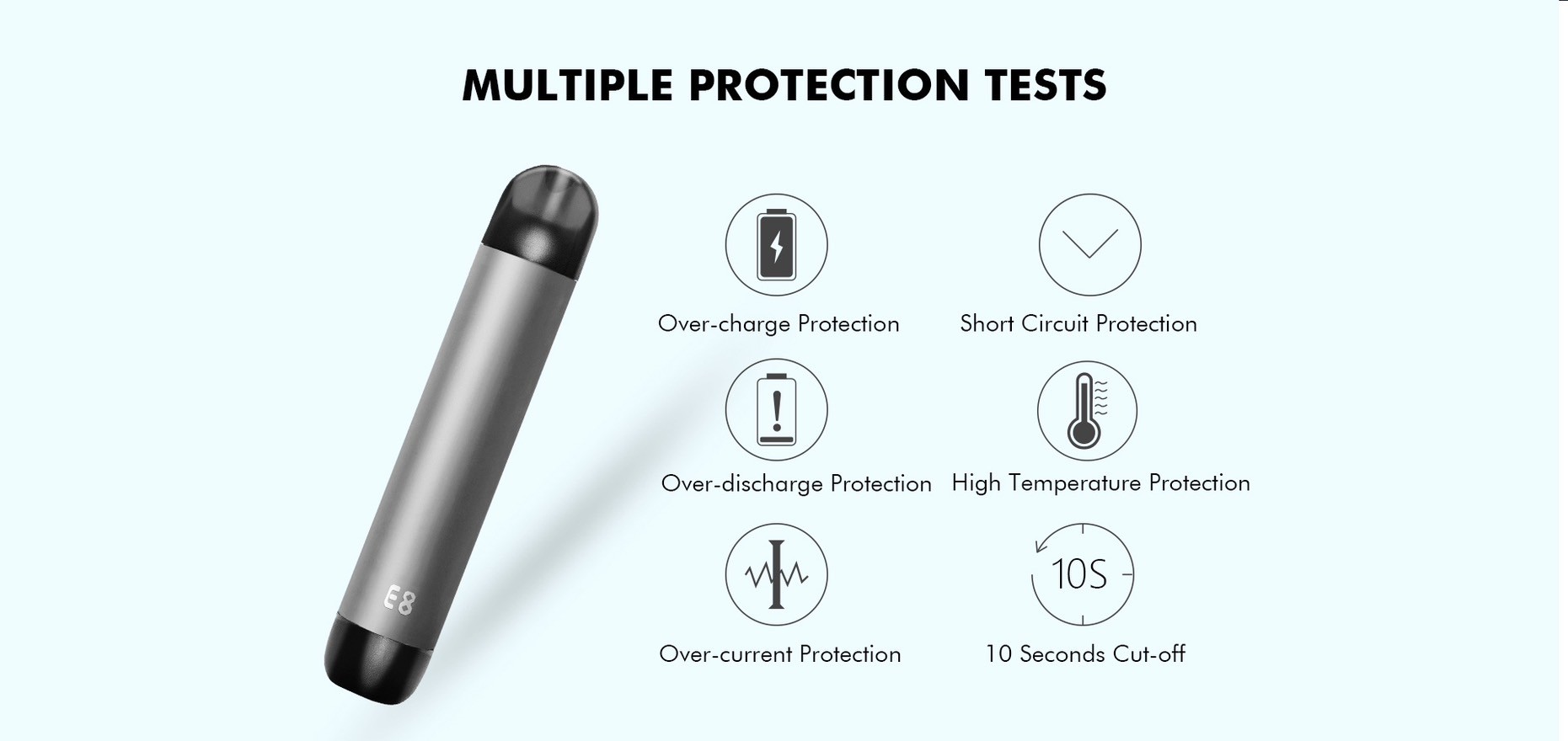 E8擁有3.7V的輸出,彌補了它的味道還原度和煙霧量。